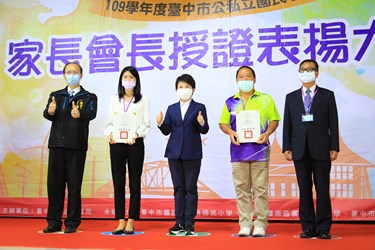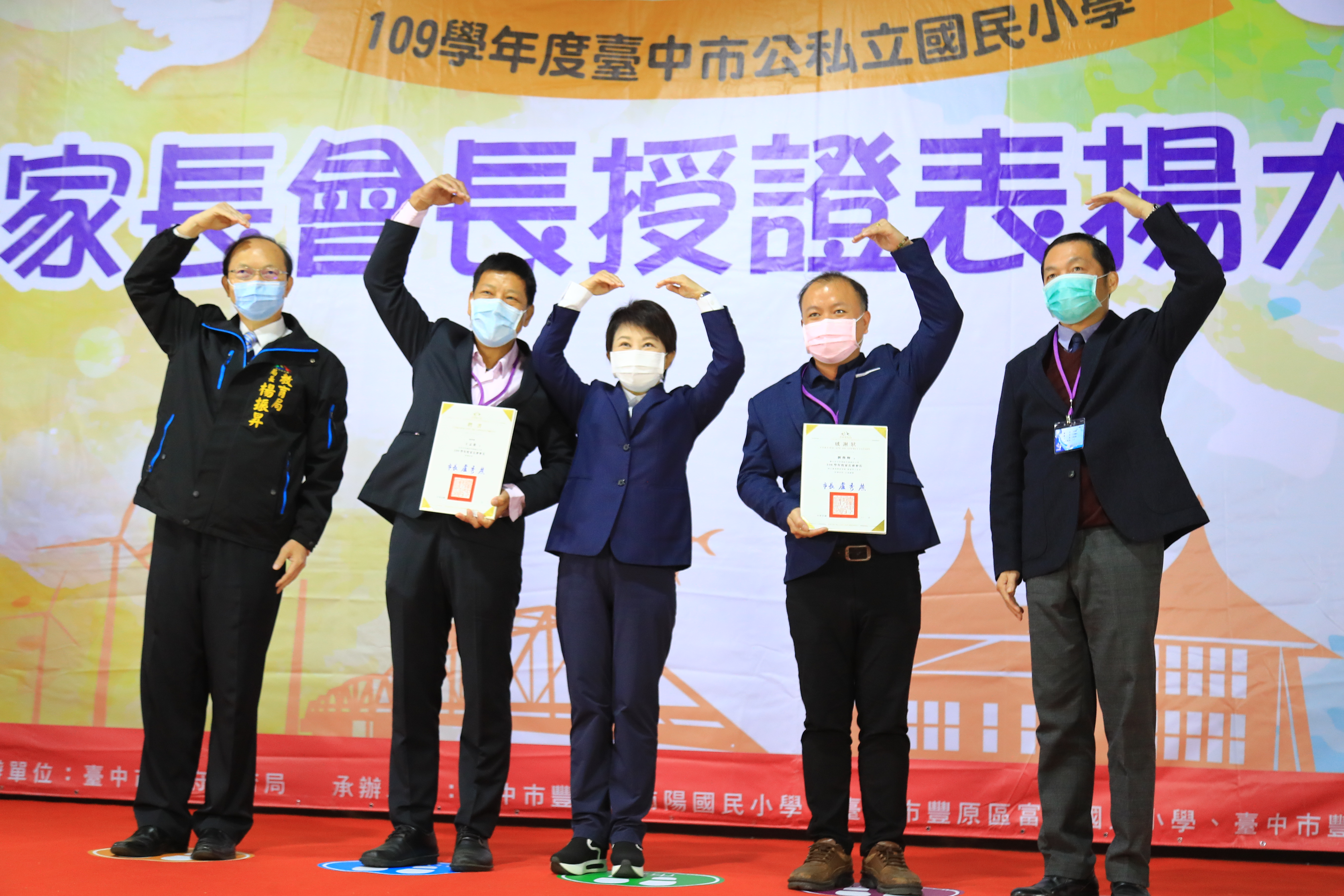 台中市109學年度公私立國民小學家長會長授證表揚大會今(15)日於豐原陽明市政大樓舉行,市長盧秀燕擔任授證人,頒贈感謝狀及當選證書給500位卸、新任家長會長,感謝家長會長們為台中教育的付出。她表示,辦好教育需要市府、學校教職員及家長共同努力,勉勵新任家長會長與市府共同守護孩子學習環境。