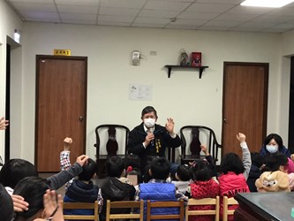 社會局此次也連結社會資源,為鎮瀾兒童家園的孩子準備新年禮物,包括廠商捐贈的潔牙用品,還有台中市聖羅蘭國際同濟會募捐的「角落生物」布偶。彭局長與同濟會長吳玲鈺等會友,和孩子分享角落小夥伴的故事,引導孩子自我肯定及認同。