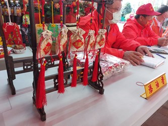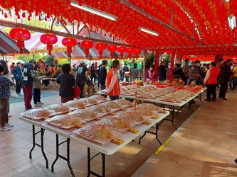 民政局說明,配合土地公頭牙祈福,今日廟方特別準備600個發財金,供民眾擲筊求財,以及長壽米糕龜、福袋等祈求活動,現場氣氛熱烈。此外,每年頭牙惠來里福德祠備有香菇雞湯供信眾食福,今年因應衛福部中央流行疫情指揮中心政策,避免近距離接觸引發傳播風險,食福活動延後舉辦,改贈長壽麵線,並請信眾進入廟區務必全程佩載口罩,保護自己也保護別人。