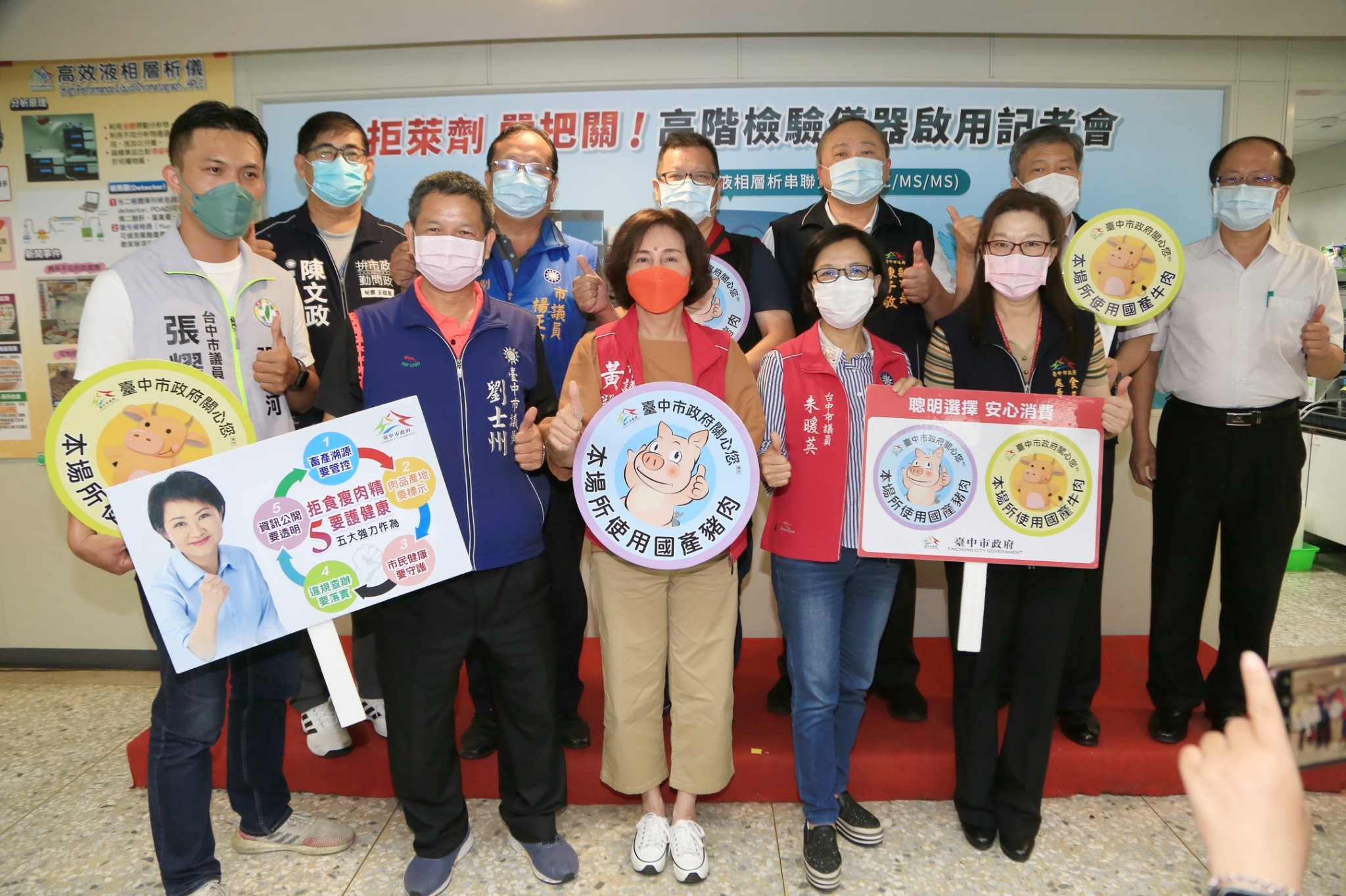 衛生局長曾梓展表示,守護巿民健康是市府責任,除了防疫工作,食品安全也不容鬆懈,多一台檢驗利器就多一分戰力;另外,針對稍早啟動記者會邀請函有註明「拒萊豬嚴把關」的字樣,曾局長澄清,此儀器針對動物用藥進行檢驗,不論是萊劑或其它用藥都適用,從出口國核准使用瘦肉精的肉品到國產肉品各類動物用藥的後市場抽驗監測均會把關,非僅限定特定肉類。