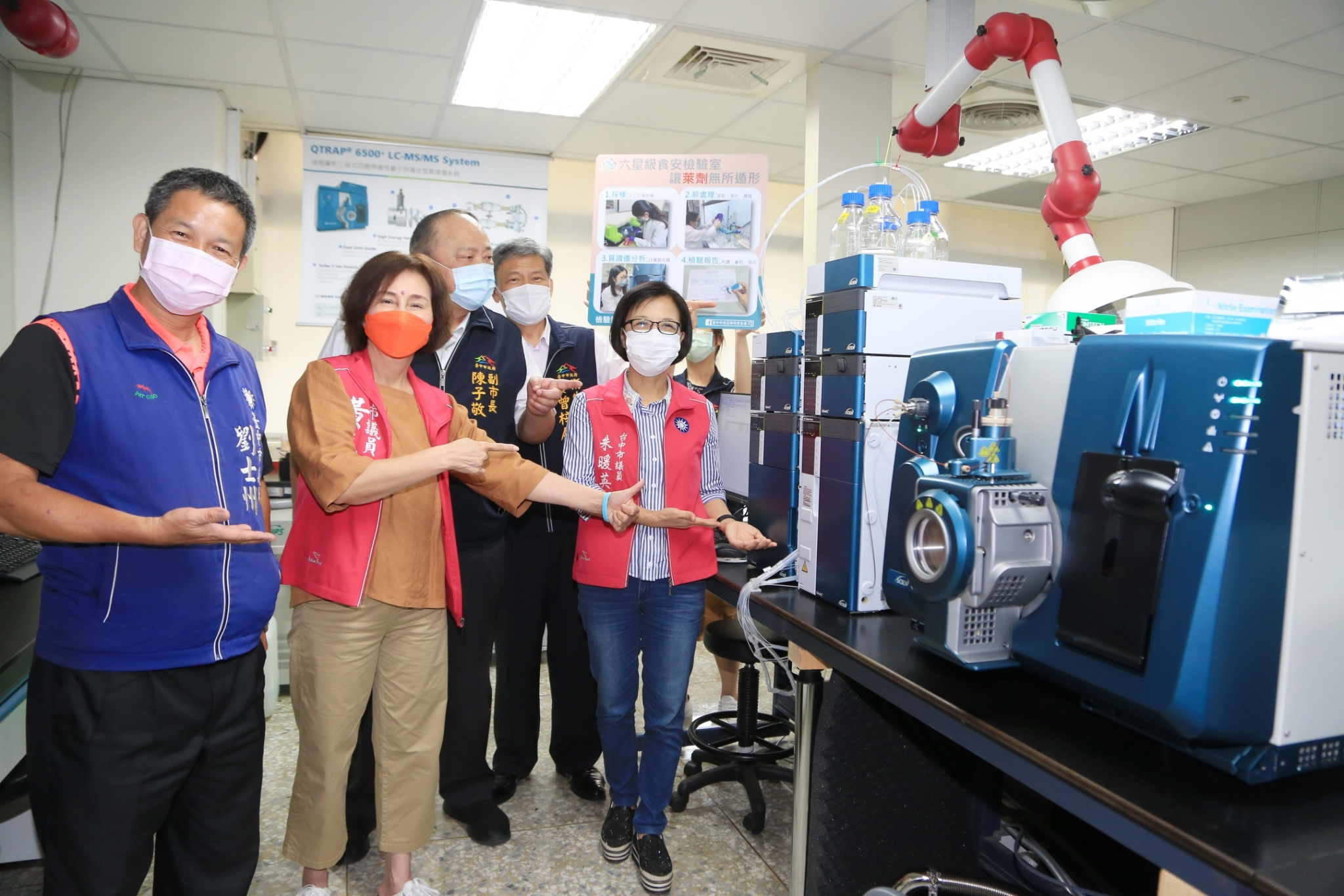今日啟用儀式,由台中市食品藥物安全處組長陶煥龍進行實驗室導覽,示範「液相層析串聯質譜儀」操作方式,包括採樣、前處理萃取、淨化、濃縮、質譜儀分析等,最後再透過檢驗報告判讀審核,全方位守護市民健康。包含陳副市長、衛生局曾局長、台中市議員劉士州、黃馨慧、朱暖英均到場致意;陳文政議員服務處、黃仁議員服務處、張耀中議員服務處、及楊正中議員服務處也派代表關心。(9/17*17)*食品藥物安全處