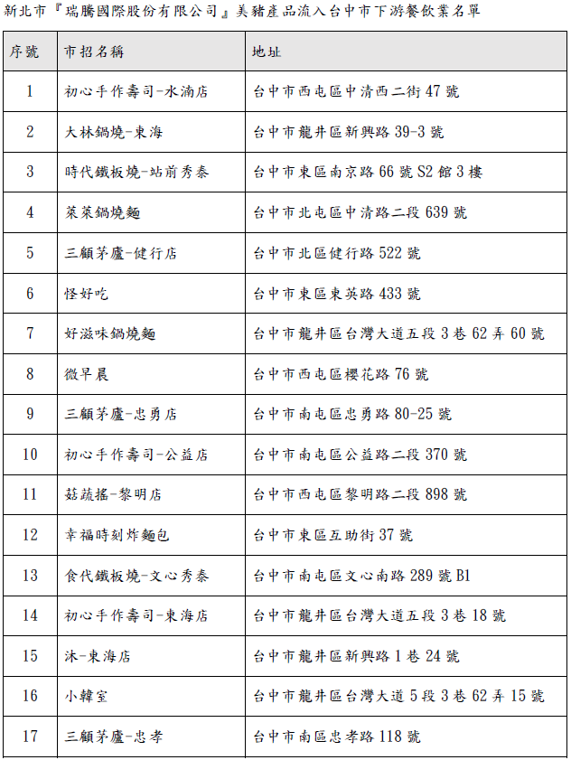 新興及瑞騰兩家公司 標示不實肉品流向 中市81家餐飲業者 市府已完成稽查持續把關