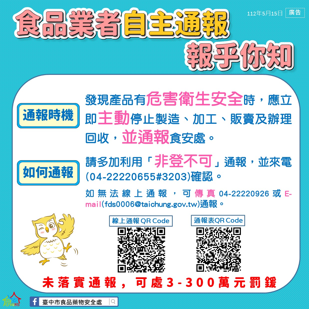 沒有落實通報,最高可依食品安全衛生管理法裁處300萬元罰鍰❗️