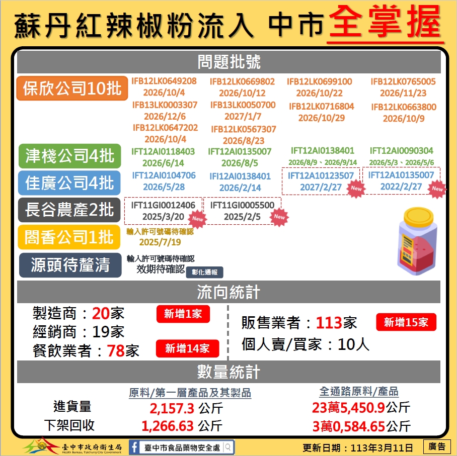 辣椒粉檢出蘇丹色素不合格專區(食藥署)