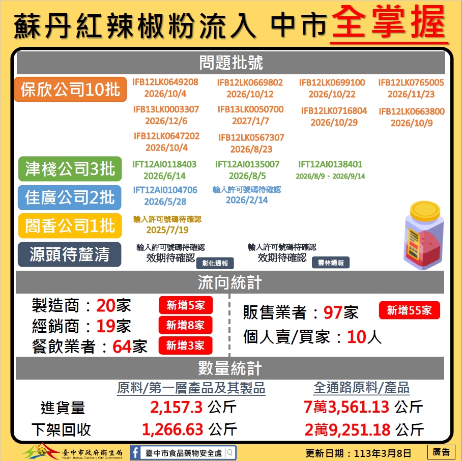 辣椒粉檢出蘇丹色素不合格專區(食藥署)