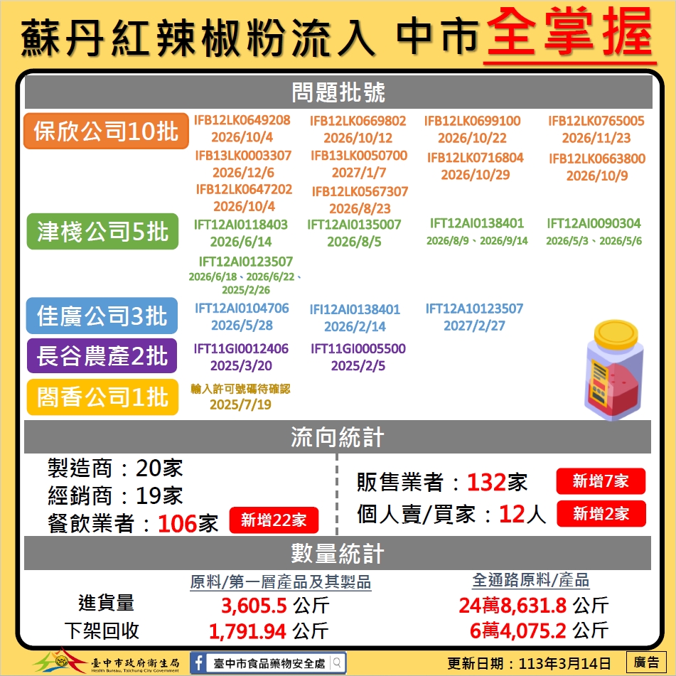 辣椒粉檢出蘇丹色素不合格專區(食藥署)