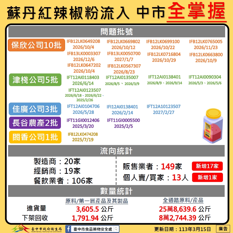 辣椒粉檢出蘇丹色素不合格專區(食藥署)