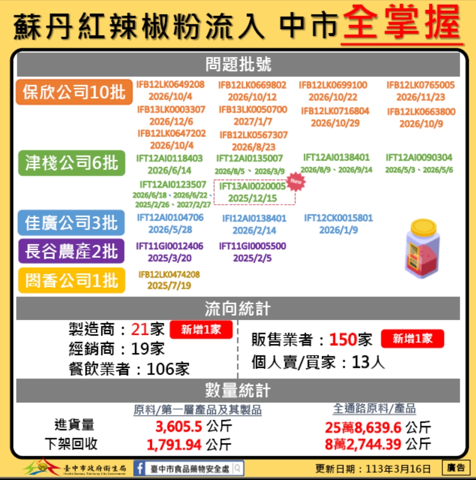 辣椒粉檢出蘇丹色素不合格專區(食藥署)