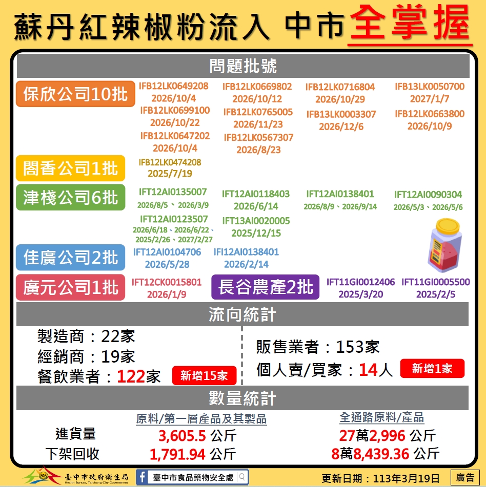 辣椒粉檢出蘇丹色素不合格專區(食藥署)