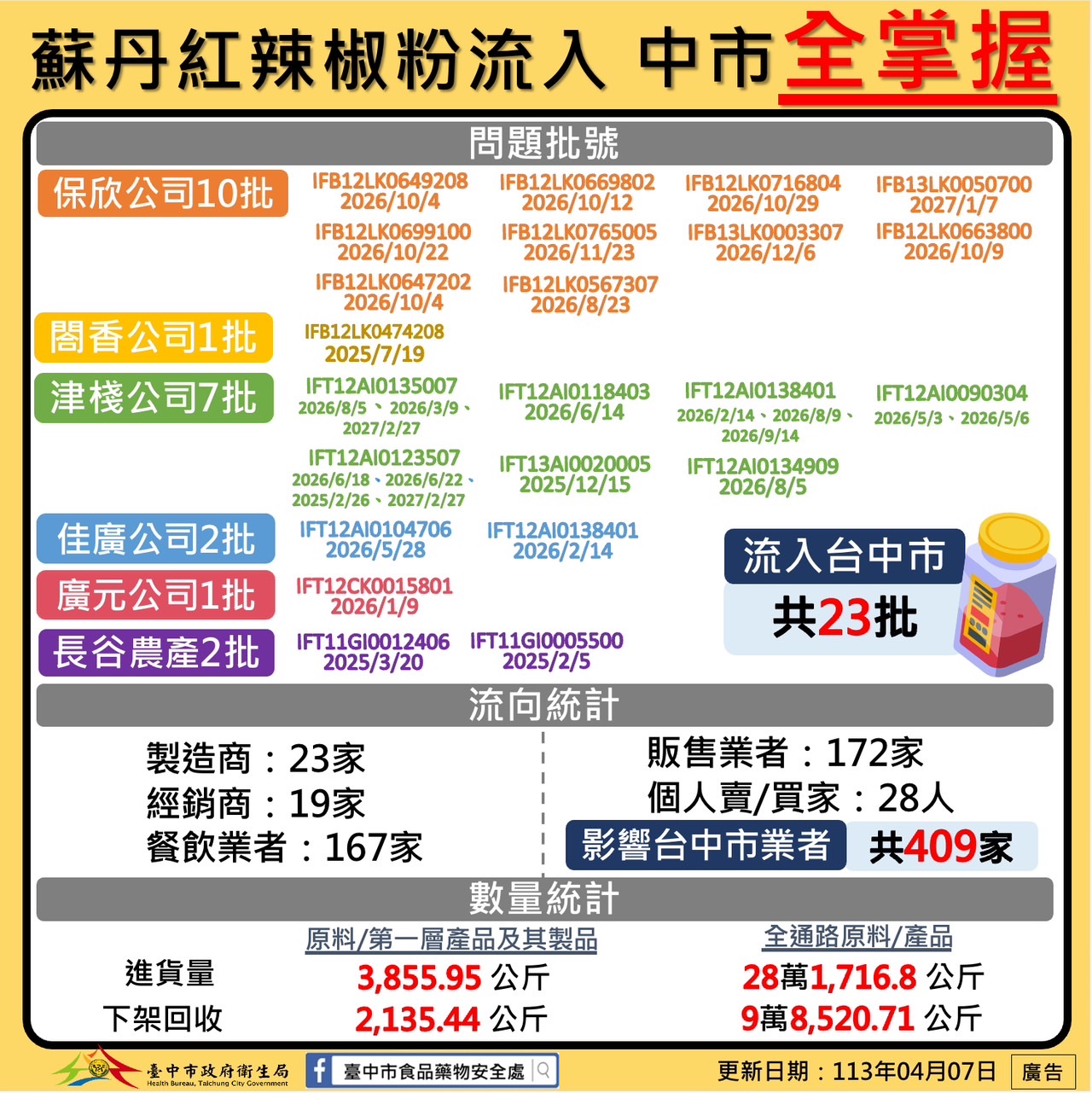 辣椒粉檢出蘇丹色素不合格專區(食藥署)
