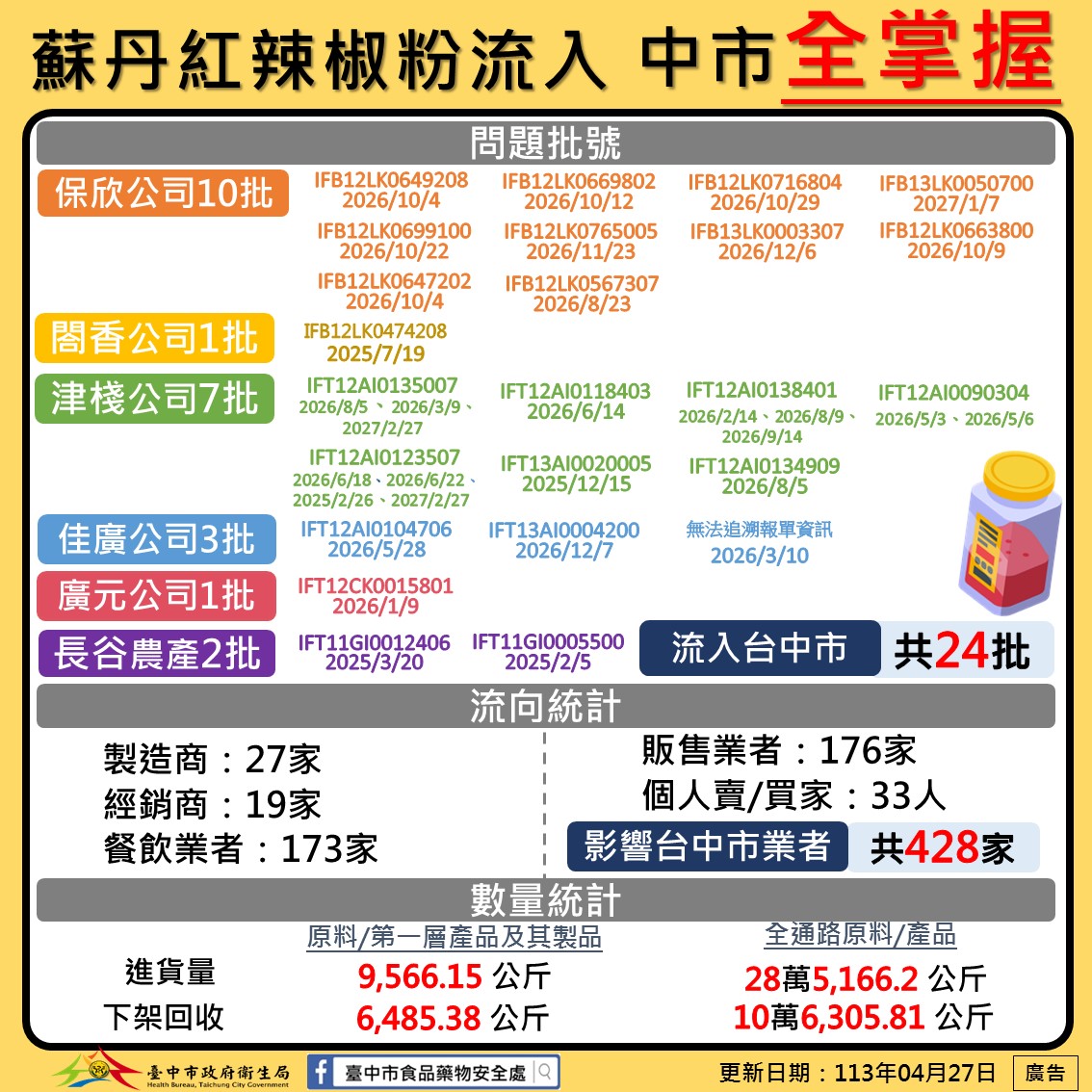 113年4月27日檢出批號與流向
