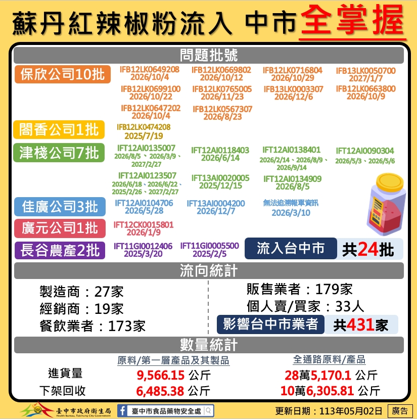 辣椒粉檢出蘇丹色素不合格專區(食藥署)