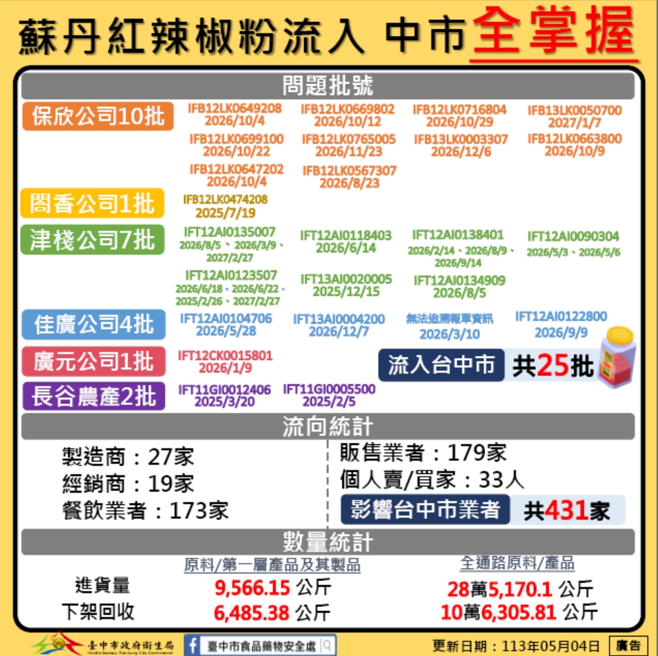 辣椒粉檢出蘇丹色素不合格專區(食藥署)