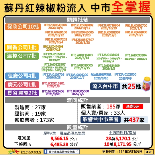 辣椒粉檢出蘇丹色素不合格專區(食藥署)