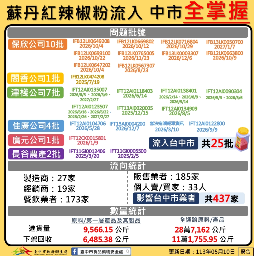 113年5月10日檢出批號與流向