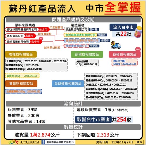 現在位置 首頁 > 蘇丹紅辣椒粉專區 > 檢出批號與流向