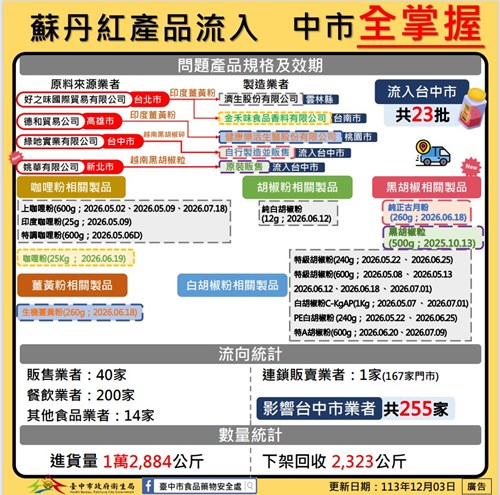 現在位置 首頁 > 蘇丹紅辣椒粉專區 > 檢出批號與流向