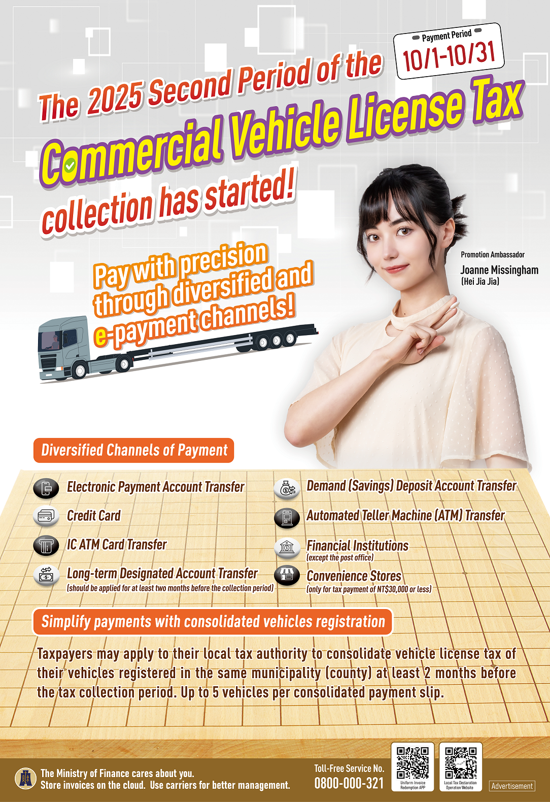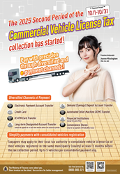 114年營業用車輛下期使用牌照稅開徵囉!記得在10月31日前繳納,以免逾期受罰,更多資訊請上地稅局查詢。