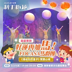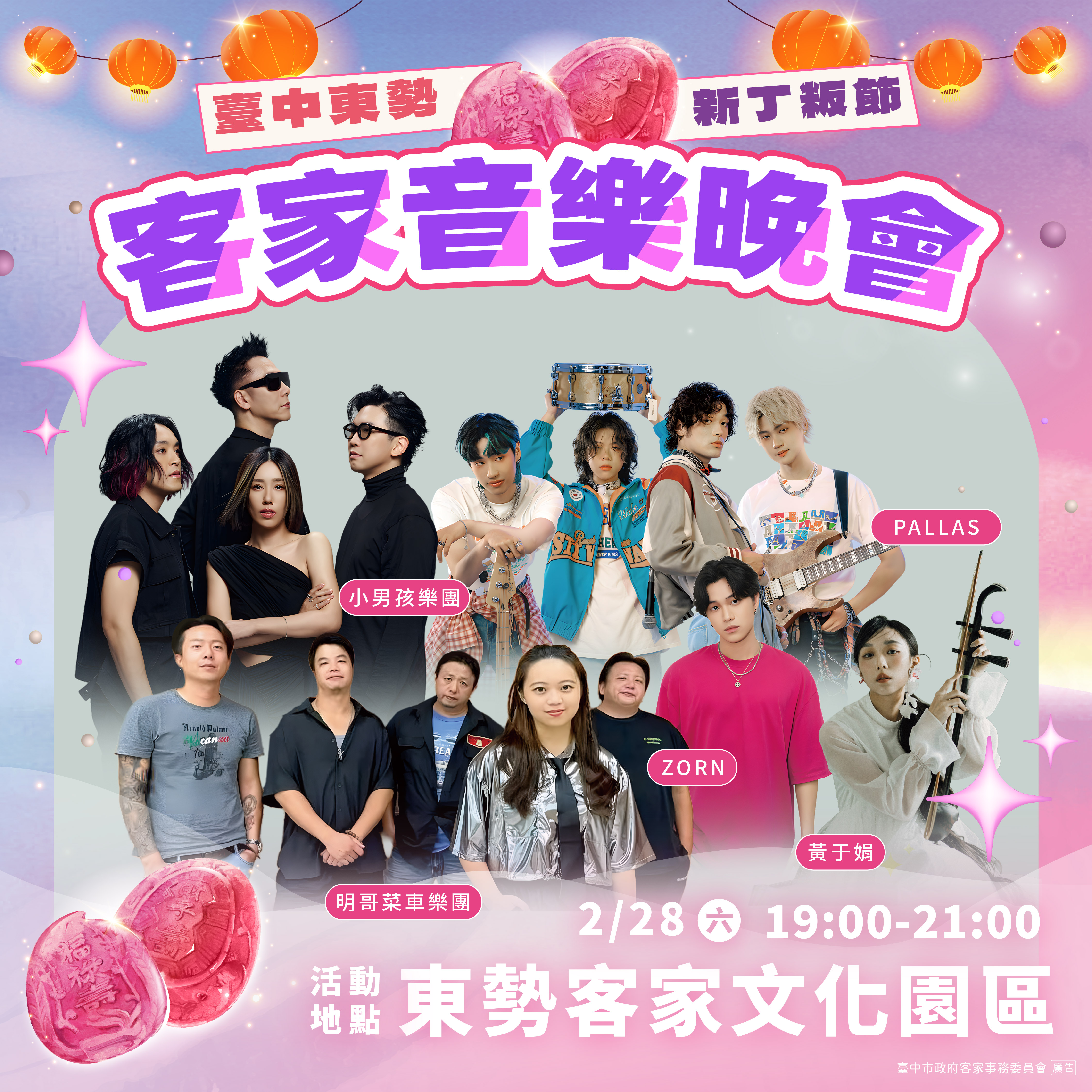 2026臺中東勢新丁粄節主視覺海報 2026臺中東勢新丁粄節2月27、28日及3月3日在東勢盛大登場! FOCASA馬戲團、小男孩樂團、ZORN、黃于娟、PALLAS帕拉斯及明哥菜車樂團,連假期間嗨翻山城,共下來尞。
