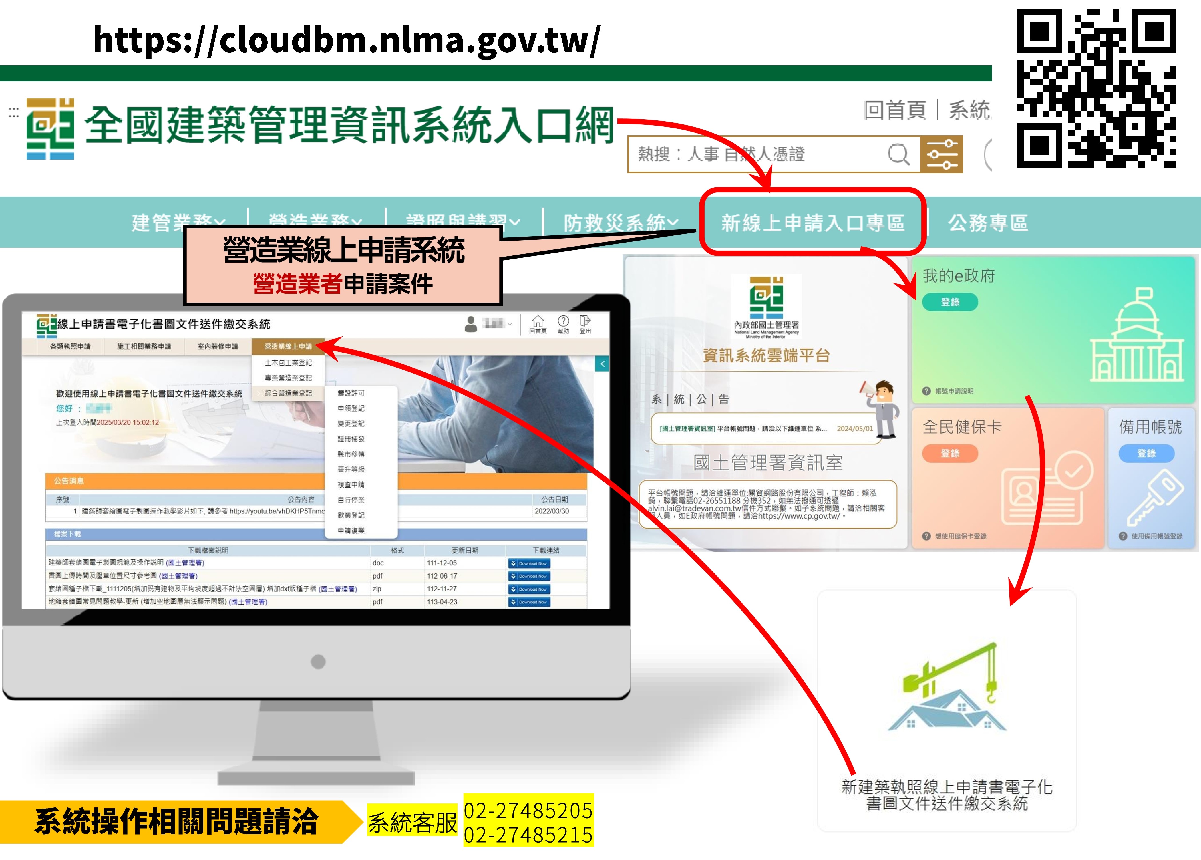 ※其餘必要之審查文件,請透過國土署營造業線上系統(https://cloudbm.nlma.gov.tw/)上傳或補件。(客服專線:02-27485205)